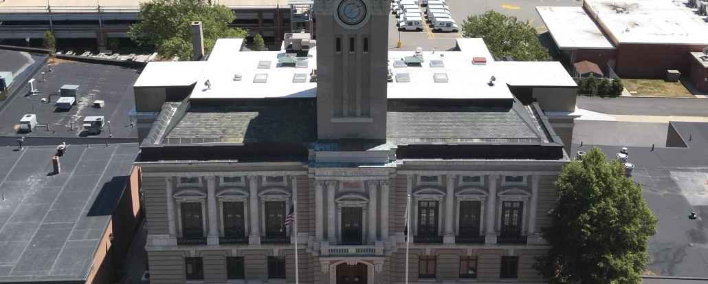 At the tower’s peak, Greenwood’s roofing team replaced the slate roof, while the architectural metal craftsmen fabricated and installed new copper trim around its base—a detail nearly invisible from the ground yet essential to maintaining the tower’s authenticity. These intricate design elements speak to the artistry and attention to detail that defined early-20th-century public architecture.